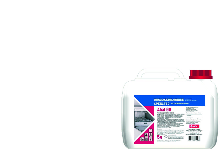 Abat GR (5 л) - жидкое кислотное концентрированное ополаскивающее средство для стаканомоечных машин
