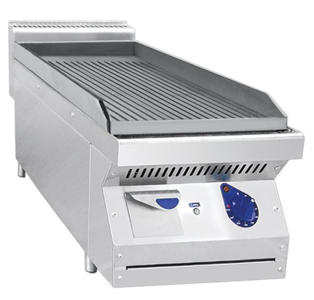 — поверхность для обжарки имеет желоб для стекающей жидкости и снабжена по периметру бортиком, позволяющим предотвратить разбрызгивание жира;
