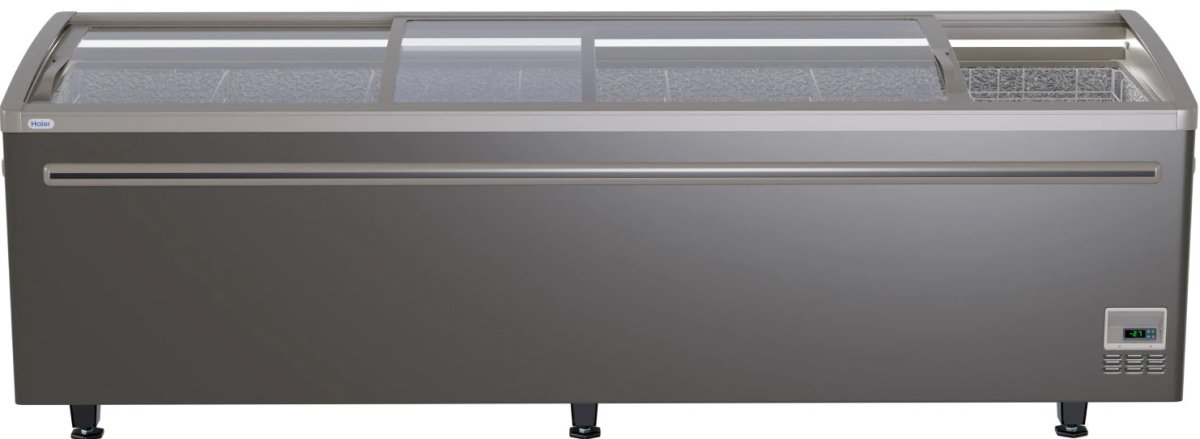 Ларь-бонета Haier GTS 2100 (GB/WB) | Два цветовых решения: W-белый, G-серый (RAL 7037), два температурных режима 0 …+10/ -12 … -24, 2104 мм, статический тип охлаждения, климатический класс 4, энергопотребление 7,8 кВт/ч в сутки, уровень шума 60 дБ, замка нет,интегрированная ручка, внутренний короб — буклированный алюминий, толщина пены 70 мм, без дренажа, подсветка — LED, бампер 1 шт.; длина кабеля 2 м; опорные ножки — 6 шт., корзины | 2104Х810х860 | 604 | 148200 |