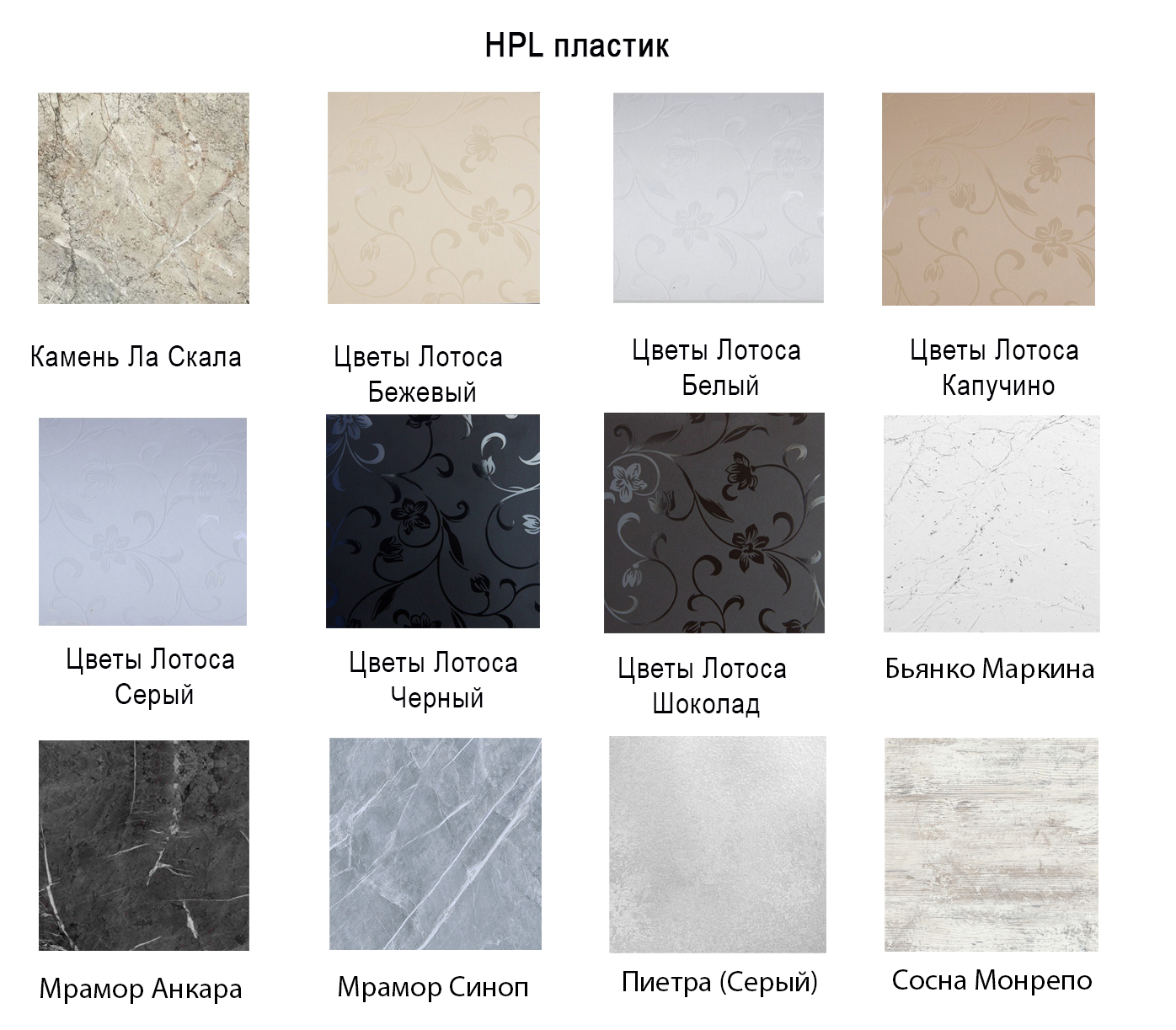 - Цвета столешницы :7 вариантов пластика HPL (фото ниже)