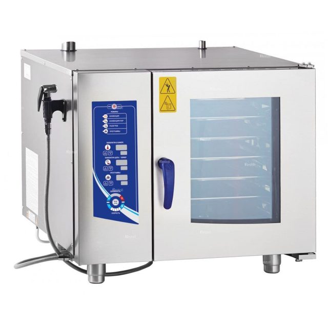 Парогенератор, 120 установленных + память на 360 доп. программ приготовления, 6хGN-1/1, автоматическая мойка, вся нерж, без г/емкостей, 3х-канальный щуп, ЖК экран, сенсорное управление, USB-порт
