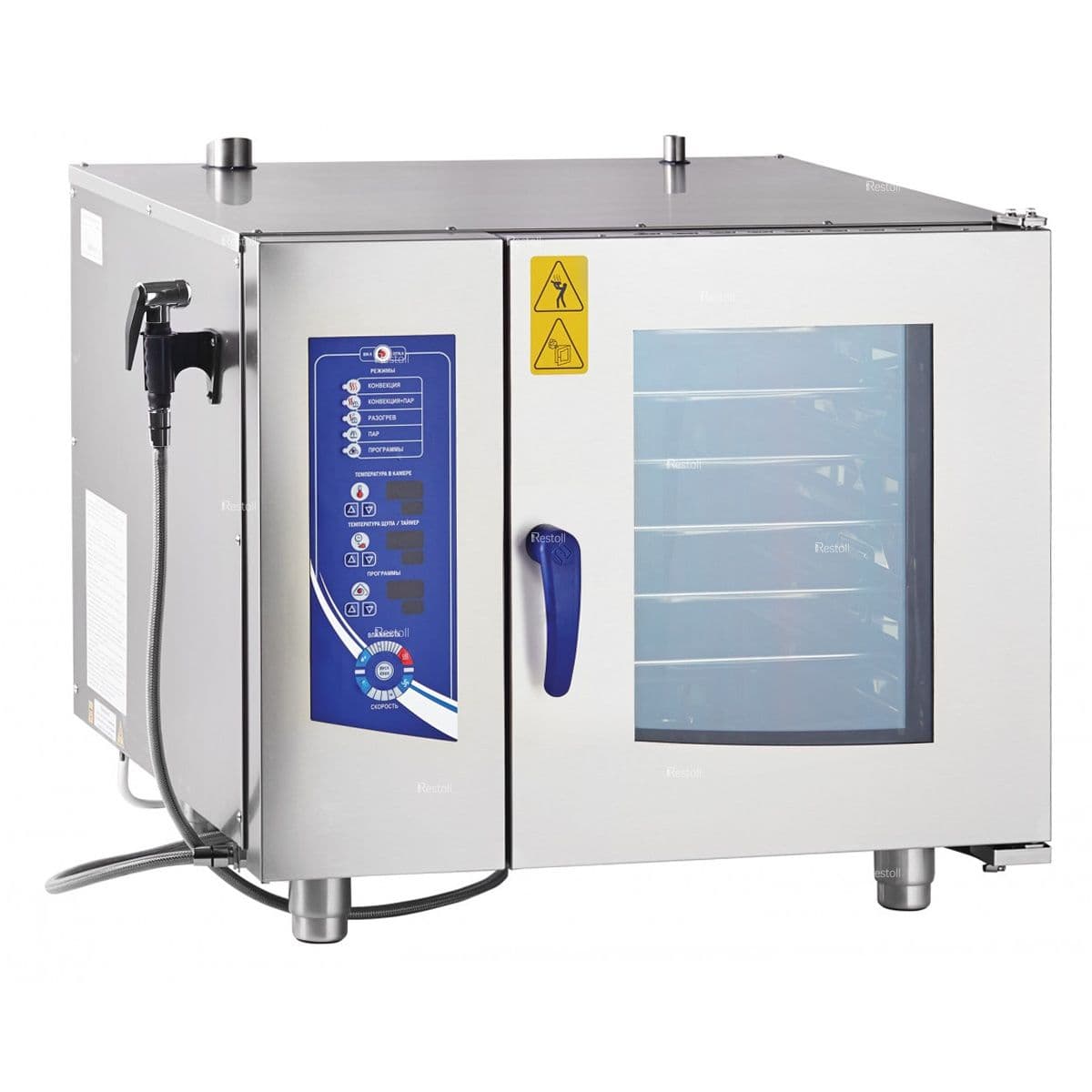 Парогенератор,память на 110 программ приготовления, вся нерж, без г/емкостей, 3х-канальный щуп, регулировка влажности, вентилятор: реверс + 5 скоростей