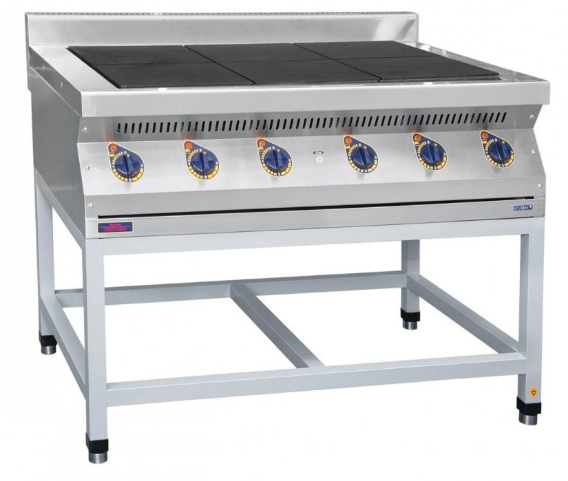 | Размеры 1111*750*940 Установка напольная Оснащение подставка (стенд) Количество конфорок 6 Размер конфорок 300х300 мм Конфорка чугунная Напряжение 380 В Мощность 16.8 кВт Температура нагрева: до 480 °C Потребляемая мощность: 16,8 кВт Площадь конфорок: 0,54 м2 Время разогрева до максимальной температуры: 25 мин. Количество ТЭНов: 3 |