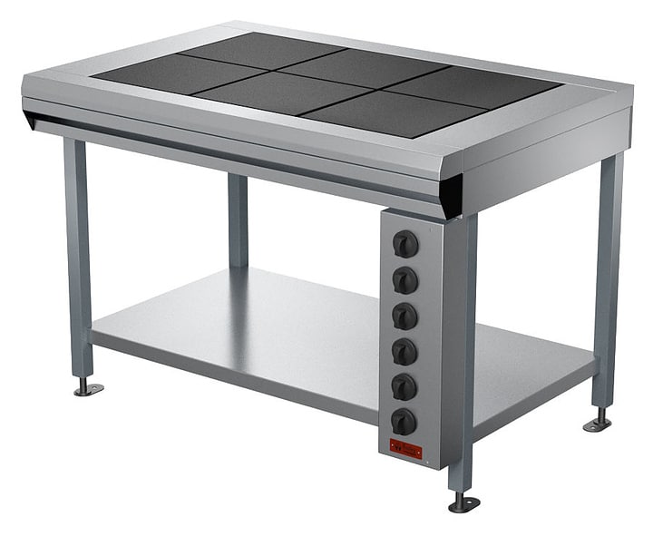 Плита 6-ти конфорочная Проммаш ПЭ-0,54С — предназначена для приготовления различных блюд в наплитной посуде, а также для жарки полуфабрикатов из мяса, рыбы и овощей на предприятиях общественного питания. Все облицовки из нержавеющей стали, каркас из черного металла с полимерным покрытием.