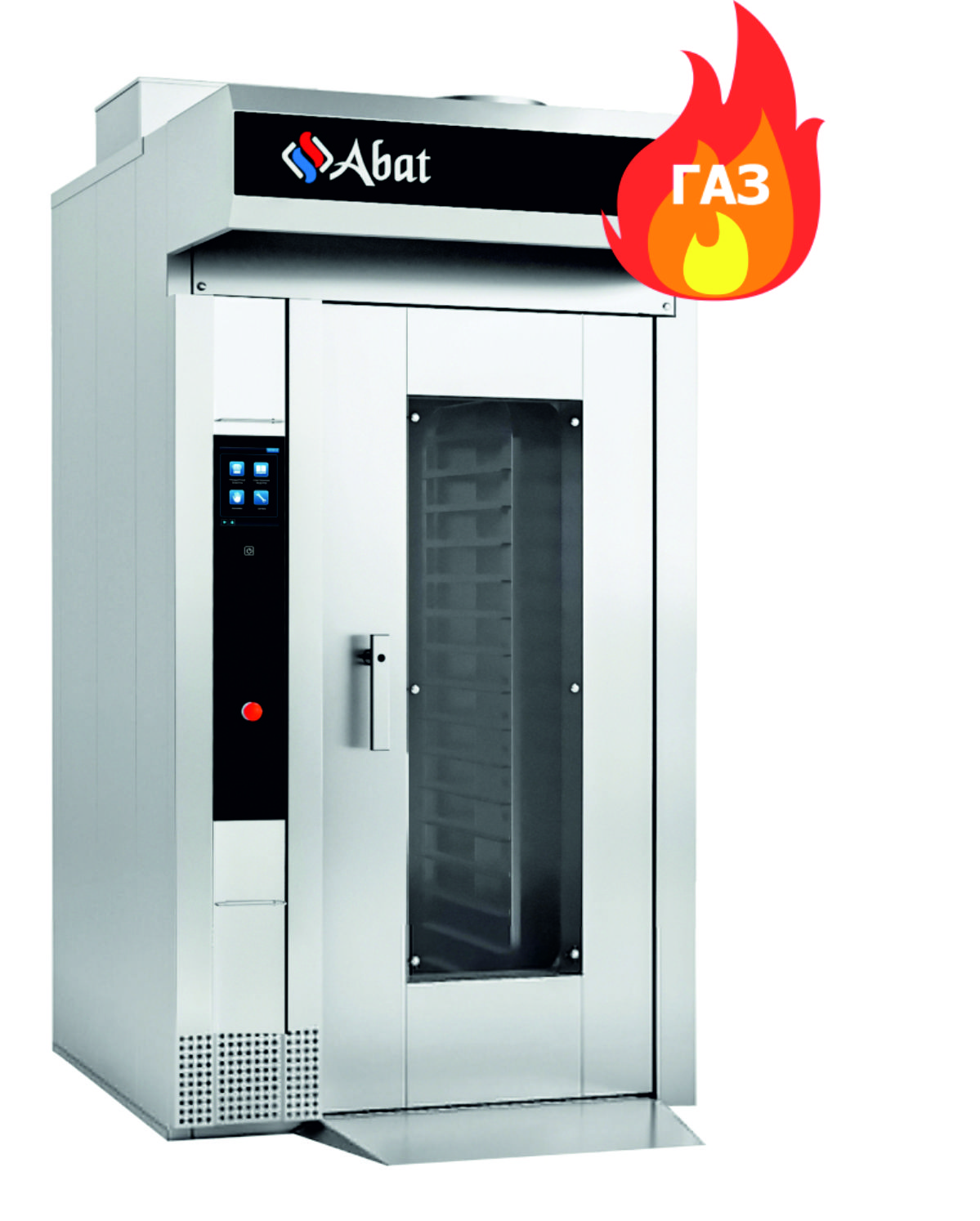 Ротационный пекарский шкаф газовый РПШ-16-6-4ПГ, серия CHEF, сенсорная панель управления, пароувлажнение каскадно-лоткового типа, регулировка скорости вращения вентилятора, регулировка влажности от 0 до 100%, память на 120 программ, до 10 шагов в каждой программе, USB-порт, в комплекте тележка-шпилька ТШГ-16-6-4 на 16 уровней 600х400 мм, тепловая мощность газовой горелки 56,3 кВт, потребляемая электрическая мощность 2,69 кВт, 400В Габаритные размеры, мм