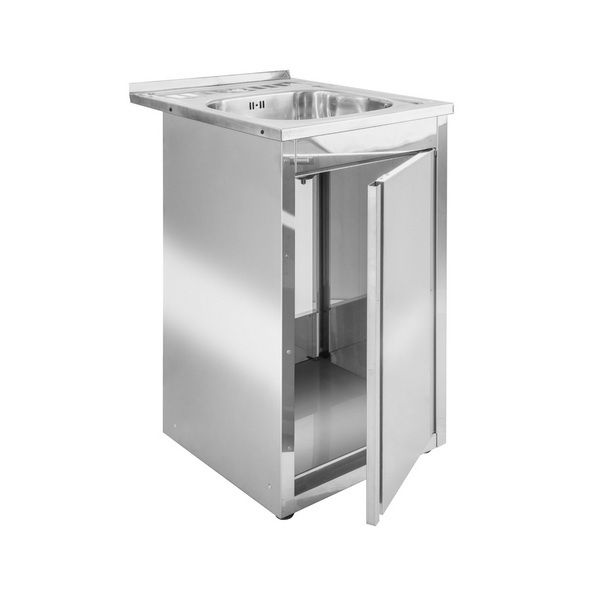 Напольный (закрытый). Мойка 400х350х160мм. - нерж.сталь. Каркас, 1 распашная дверь - нерж.сталь. Сифон в комплекте.