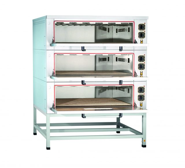 Шкаф пекарский подовый Abat ЭШП-3КП электрический, 3 оцинк. камеры 1035x800x263(233) мм, пароувлажнение, нерж. ТЭН-ы, раздельная регулировка верхних и нижних ТЭН-ов (+50…+320 С), нерж. облицовка, нерж. дверцы с жаропрочным стеклом, краш. боковые и задняя стенки, поды — природный камень, подсветка, 14,64 кВт, 400В, разборный
