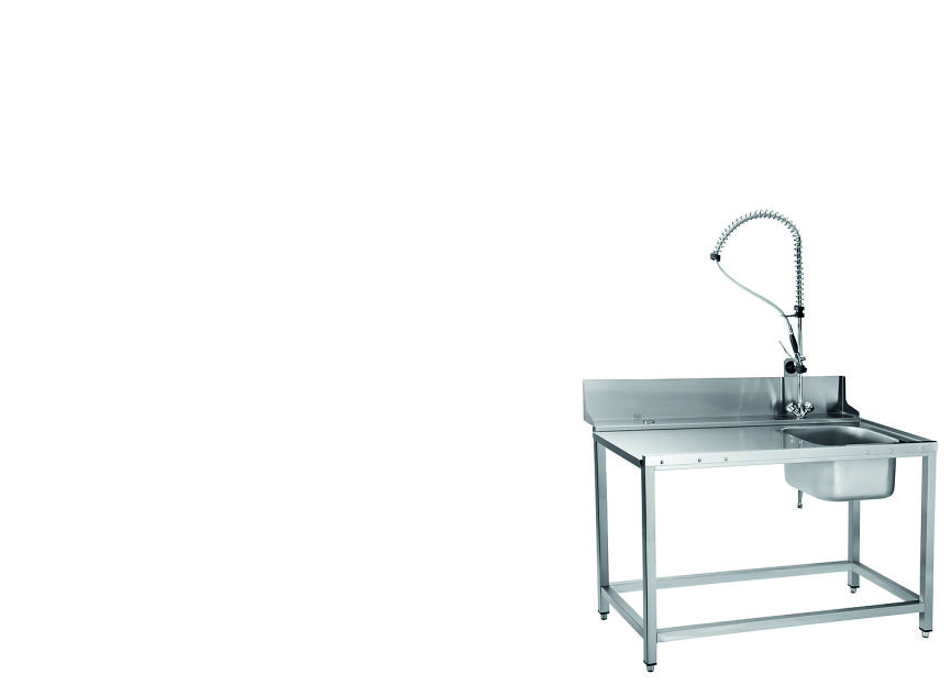 Стол предмоечный СПМП-7-4 (1304х725 мм) душ-стойка, мойка цельнотянутая 400х400х250, для туннельных машин МПТ