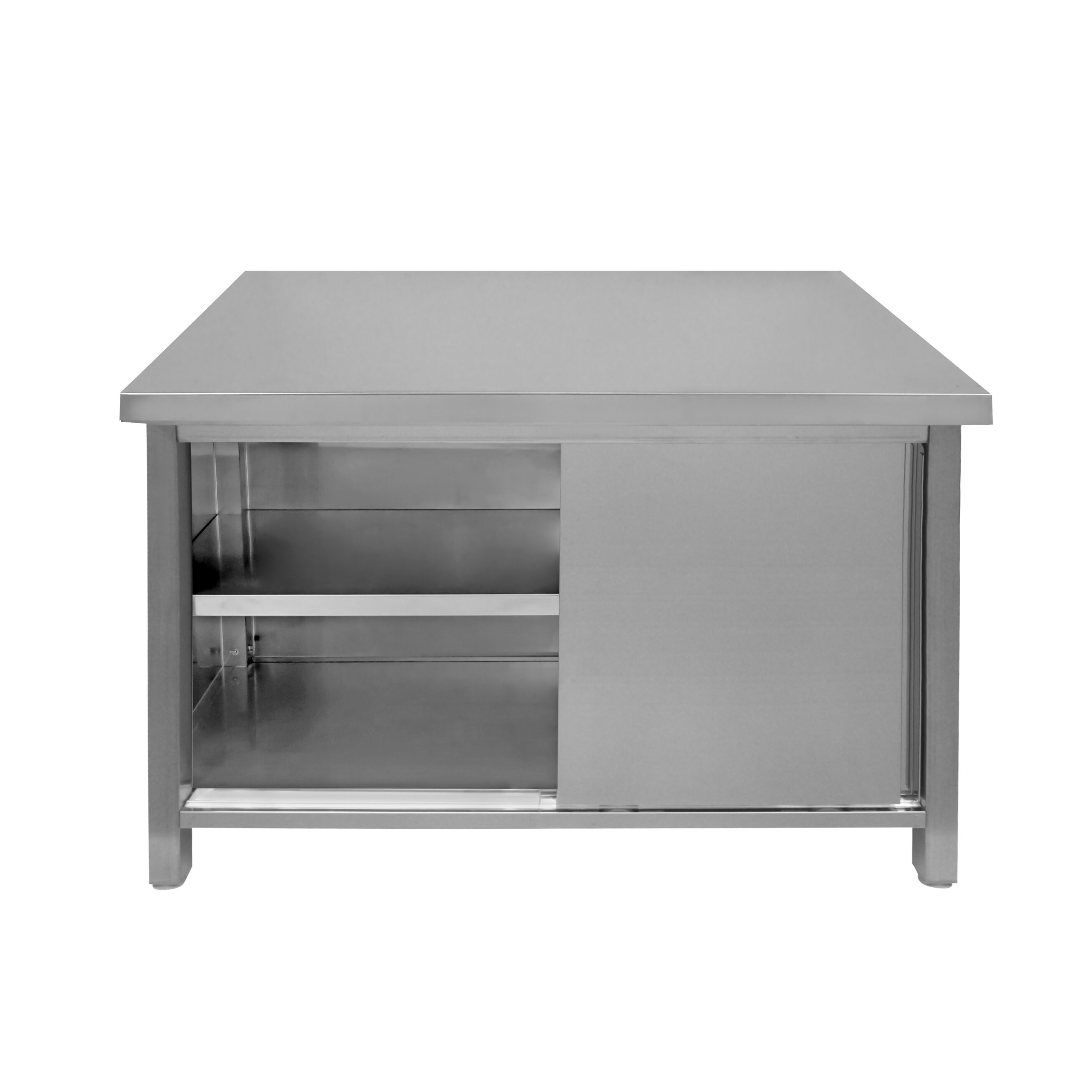 Стол-тумба СТКО 9/6 нерж | 900 | 600 | 870 | Островной (без борта), столешница — AISI430, усилена ДСП 16мм. Каркас, двери купе, 1 сплошная полка — нерж.сталь | 54 | 0,57 | 41 769 |