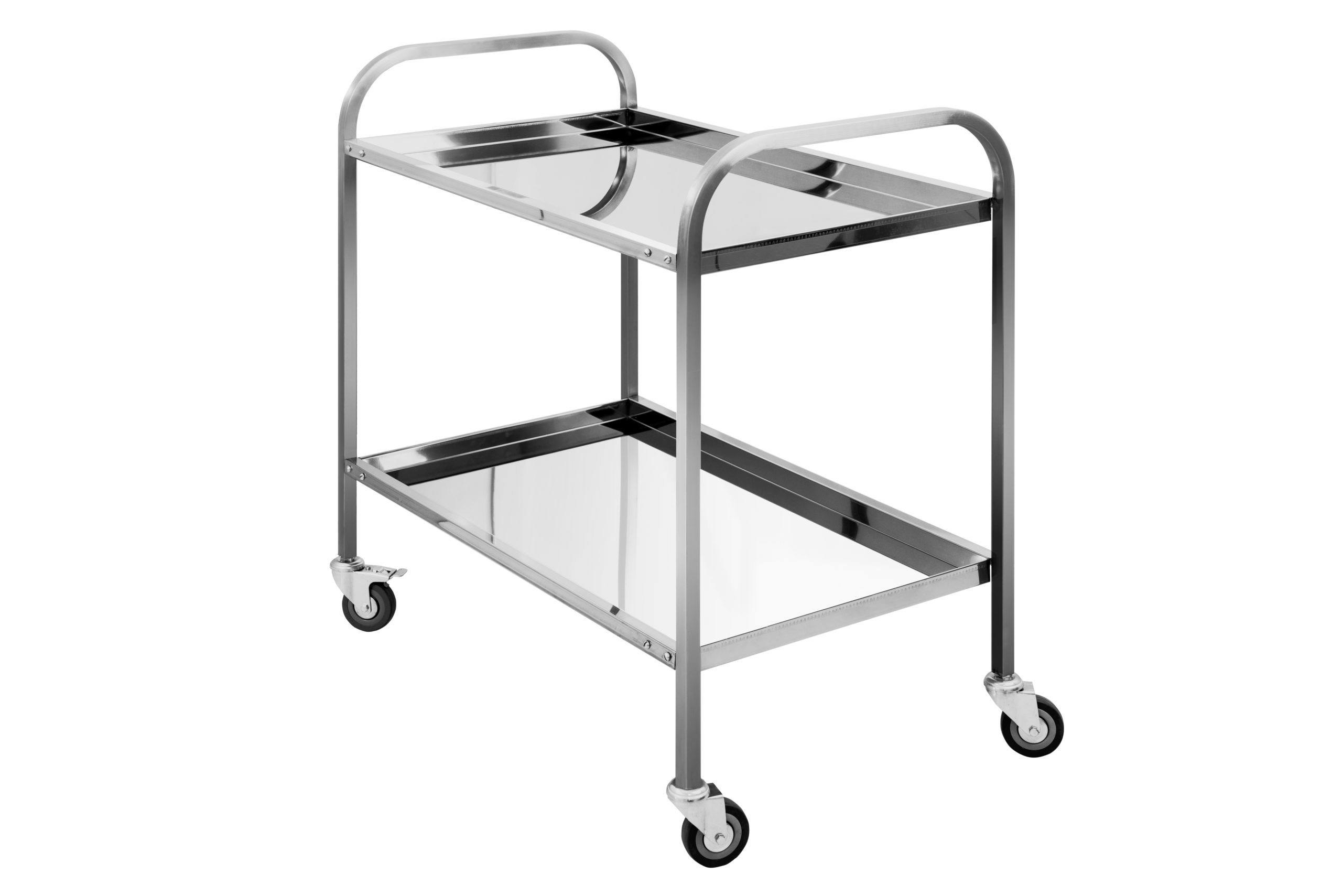 Сервировочная, AISI430, 2 поддона глубиной 30мм, колеса d=75мм, 1 с тормозом, разборная Габариты: 800*500*970мм