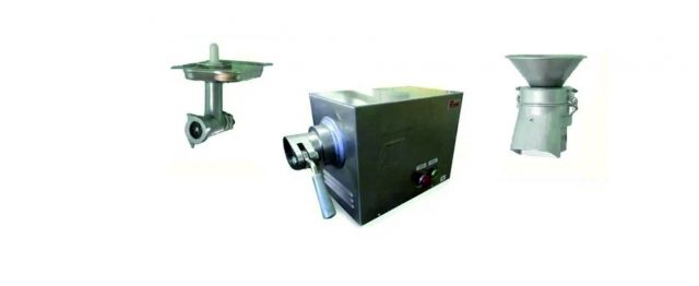 В комплект входят: приводной механизм (приводит в действие отдельные сменные механизмы), механизм для приготовления мясного и рыбного фарша(Производительность – 75 кг в час. Наружный диаметр решеток – 60 мм. Диаметр отверстий ножевых решеток – 5; 9 мм.) и механизм протирочный для протирания вареных овощей, фруктов и творога (Протирка картофельного пюре 600 кг в час). Машина предназначена для механизации основных процессов переработки пищевых продуктов на предприятиях общественного питания (столовые, кафе, рестораны). Приводной механизм комплектуется двухскоростным электродвигателем.