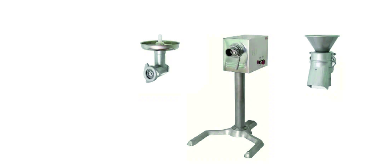 В комплект входят: приводной механизм (приводит в действие отдельные сменные механизмы), механизм для приготовления мясного и рыбного фарша(Производительность – 250 кг в час. Наружный диаметр решеток – 82 мм. Диаметр отверстий ножевых решеток – 5; 9 мм.), механизм протирочный для протирания вареных овощей, фруктов и творога (Протирка картофельного пюре 600 кг в час) и подставка (на нее устанавливается приводной механизм). Машина предназначена для механизации основных процессов переработки пищевых продуктов на предприятиях общественного питания (столовые, кафе, рестораны). Приводной механизм комплектуется двухскоростным электродвигателем.