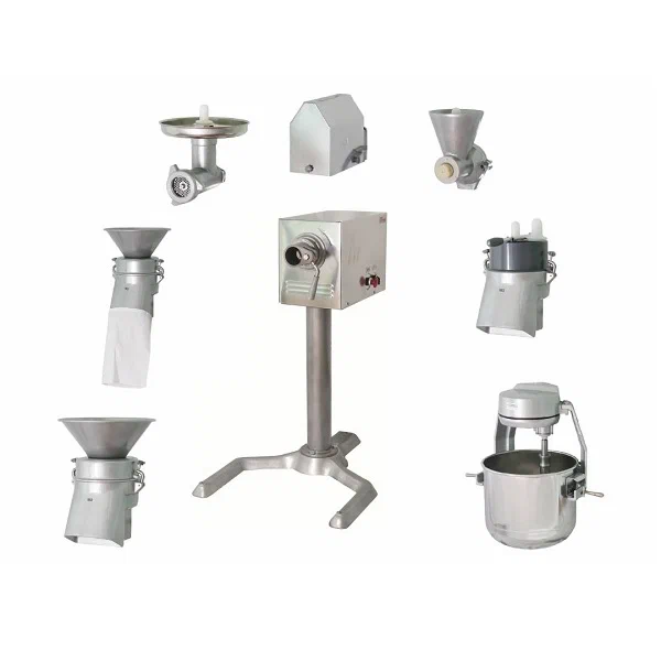 В комплект входят: приводной механизм (приводит в действие отдельные сменные механизмы), механизм для приготовления мясного и рыбного фарша (Производительность – 250 кг в час. Наружный диаметр решеток – 82 мм. Диаметр отверстий ножевых решеток – 5; 9 мм.), механизм овощерезательно-протирочный для нарезания сырых овощей и шинковки капусты, нарезания вареных овощей, протирания вареных овощей, фруктов и творога (Количество рабочих дисков – 6 шт. Нарезка овощей 200-350 кг в час, протирка картофельного пюре 600 кг в час), механизм для взбивания и перемешивания (Взбивание кондитерских смесей; замешивание жидкого теста; взбивание картофельного пюре, мусса и самбука; перемешивание мясного и творожного фарша), просеиватель (предназначен для просеивания муки, крахмала, сахарного песка, соли, дробленых круп (ячневой, манной, кукурузной, пшеничной), размолотых сухарей для панировки. Техническая производительность по муке не менее 230 кг в час), рыхлитель (Надрезание волокон порционных кусков мяса перед обжариванием. Производительность техническая, не менее – 1500 порций в час), механизм для измельчения сухарей и специй (Крупный помол. Производительность техническая (на сухарях), не менее – 15 кг в час) и подставка(на нее устанавливают приводной механизм). Предназначена для механизации основных процессов переработки пищевых продуктов на предприятиях общественного питания (столовые, кафе, рестораны).