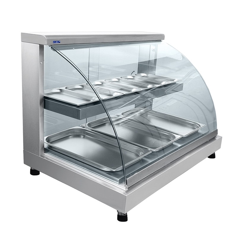 Витрина тепловая настольная типа Abat ВТН 70 предназначена для демонстрации и поддержания в горячем состоянии закусок, выпечки, готовых блюд в тарелках или гастроемкостях для реализации на предприятиях общественного питания и торговли. Витрина оснащена панелью управления, терморегуляторами, полкой, раздвижными дверцами, 5 люминесцентными лампами освещения . Размеры полки 1043х372х60 мм.Полка, стойки и основание витрины выполнены из нержавеющей стали AISI 304 толщиной 1 мм, боковые стенки и раздвижные дверцы из закаленного стекла толщиной 5 мм. Со стороны покупателя – гнутое закаленное стекло толщиной 6 мм. В комплект поставки витрины входят гастроемкости GN 1/1 глубиной 40 мм – 3 шт. и GN 1/3 глубиной 20 мм – 5 шт.